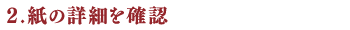 - ご希望の銘柄、紙色が決まりましたら、右側の「詳細確認とお見積りはこちら」をクリックしていただき、「詳細」ページへ進み、紙の仕様をご確認ください。